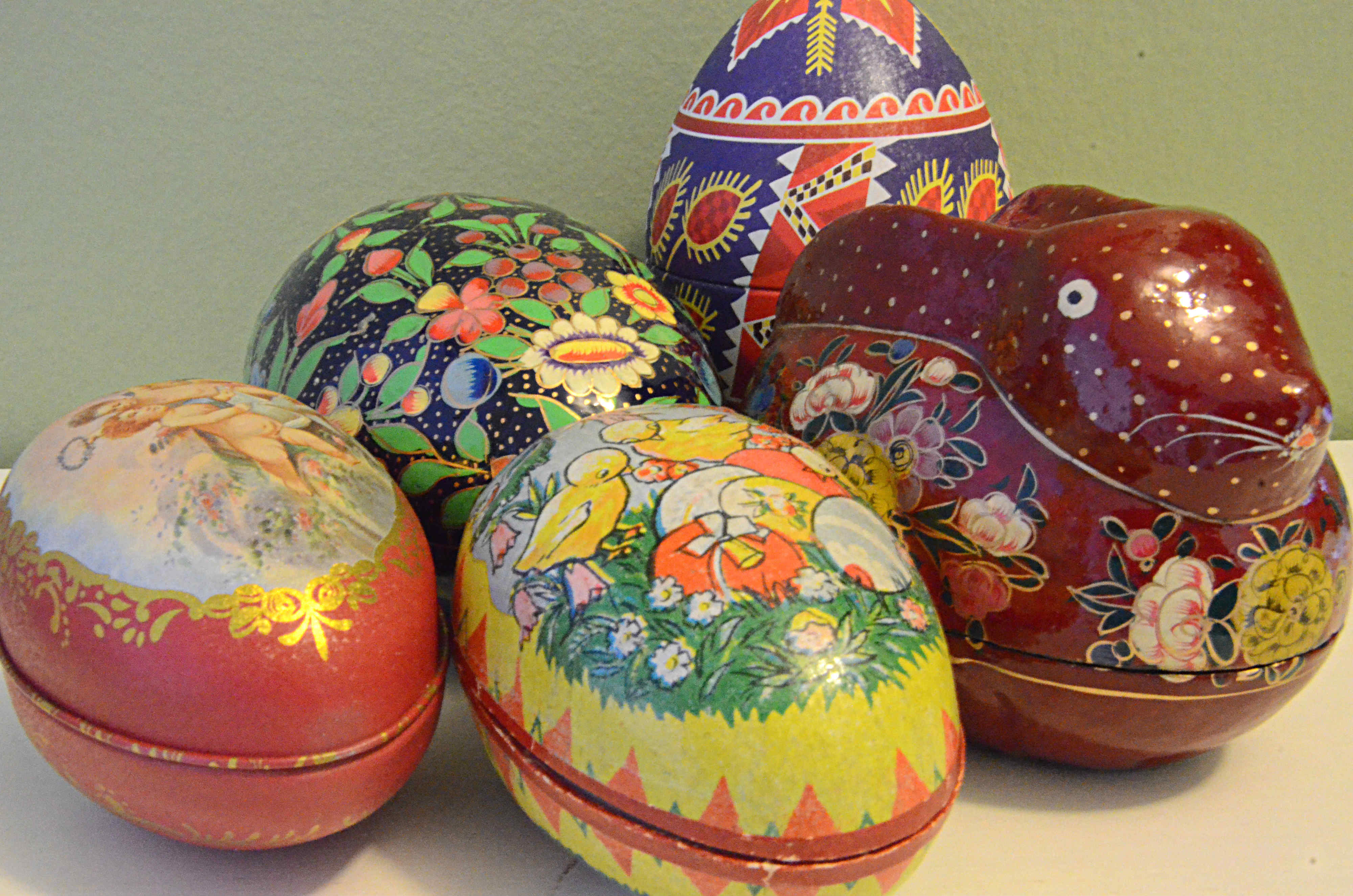 De första åren tillsammans ingick det i min och Peters tradition att leta upp ett extra fint ägg att lägga godiset i. Vi har sparat nästan alla och har dem som påskdekoration. Nu känns det som att de inte behöver bli så många fler och det funkar att återvinna något passande från tidigare år. En gång hade jag turen att hitta ett fint i en antikaffär och det kan vara värt att titta i second handbutiker. Den här sortens rättvisemärkta ”ägg” har jag valt ett par gånger också. En tacksam gåva när det är fyllt med miljövänligt godis.